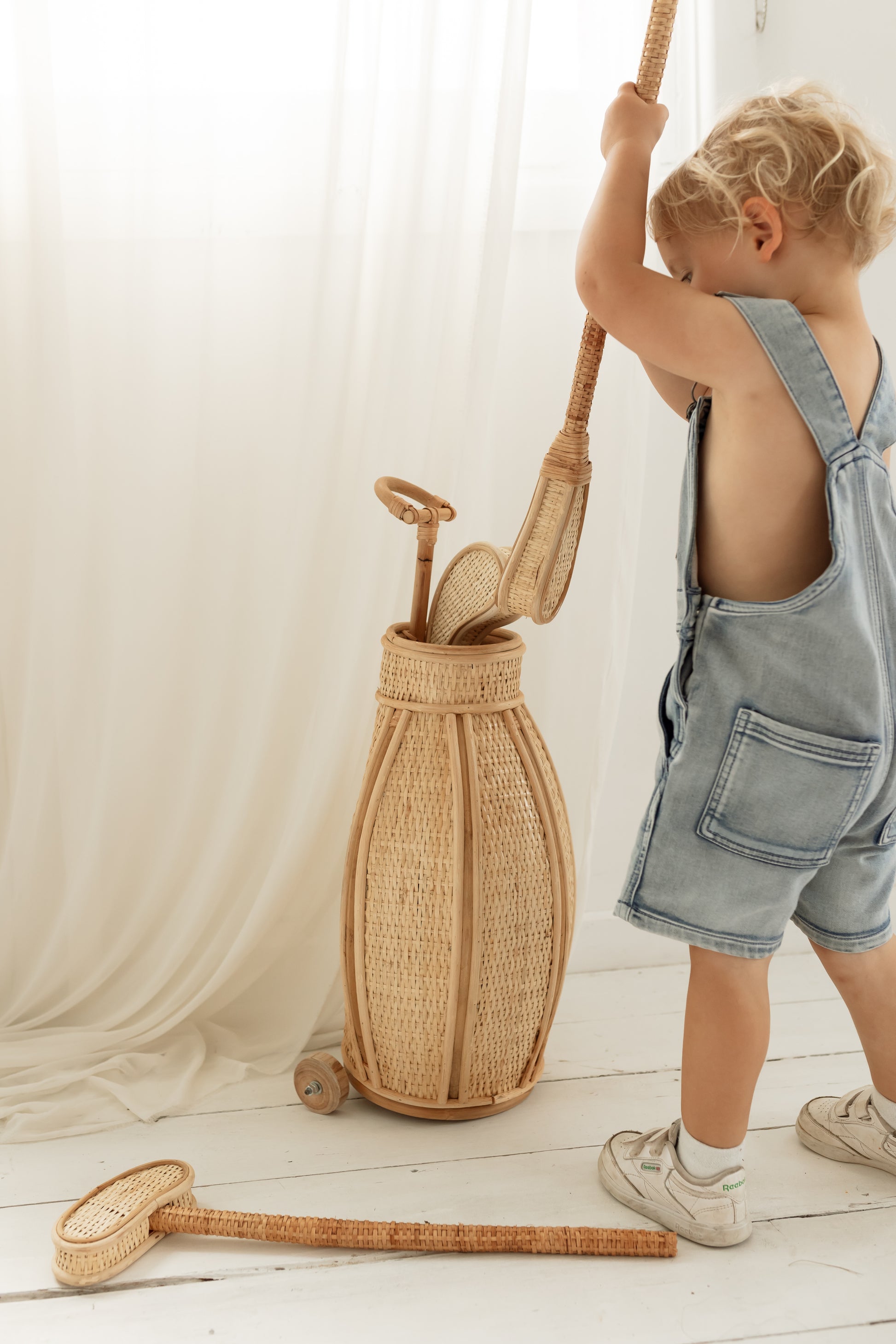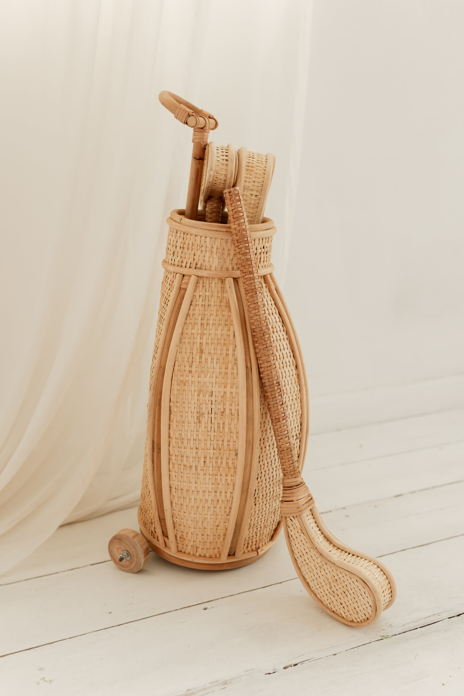 - Three lightweight rattan golf clubs, sized perfectly for children